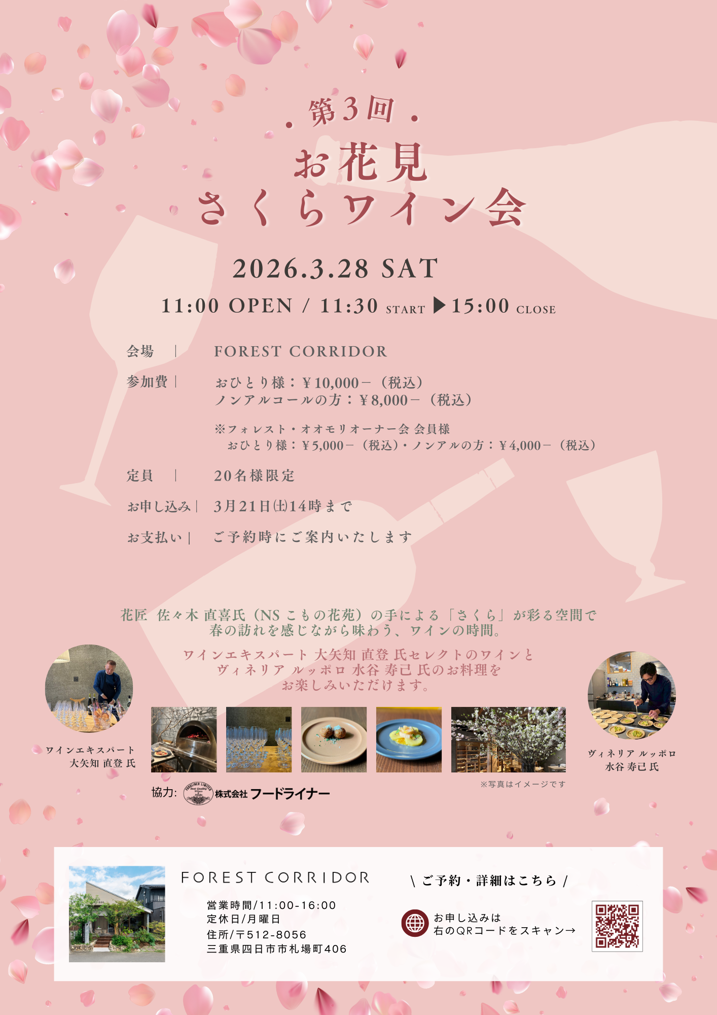 参加費|おひとり様:¥10,000-(税込)/ ノンアルコールの方:¥8,000-(税込)